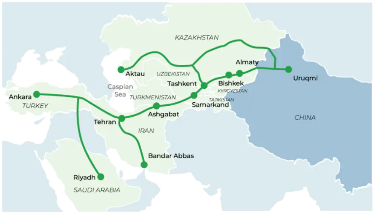 Turkmenistan, Iran, and Turkey through new rail, road, and energy