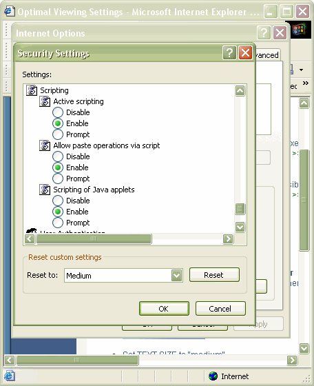 Internet Options >> Internet Zone >> Security >> Custom Level >>