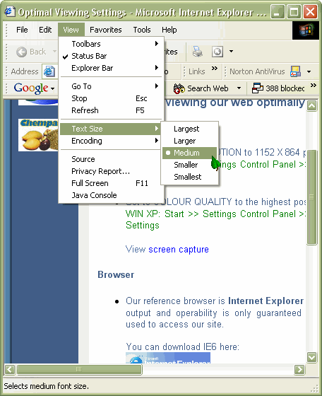 IE 6: View >> Text
